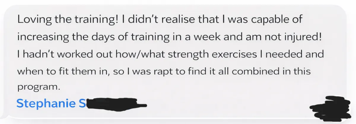 Get unstuck fast with monthly live Q&A calls — ask me directly about exercises, injury concerns, or how to modify your running plan to suit you.